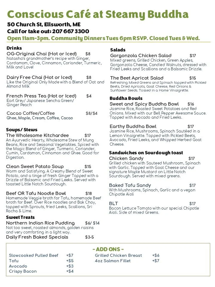 Open 11AM-3PM- Community Dinners Tues 6pm - RSVP -Closed Tue/Wed